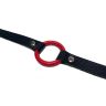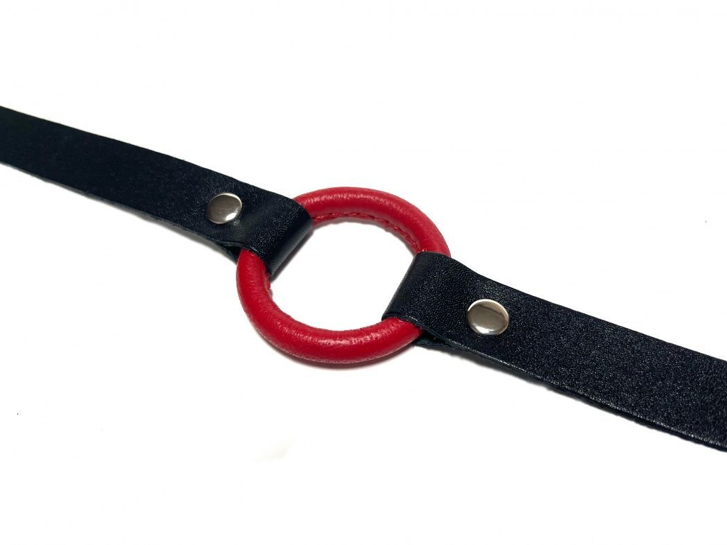 Красный кляп-кольцо на черных кожаных ремешках