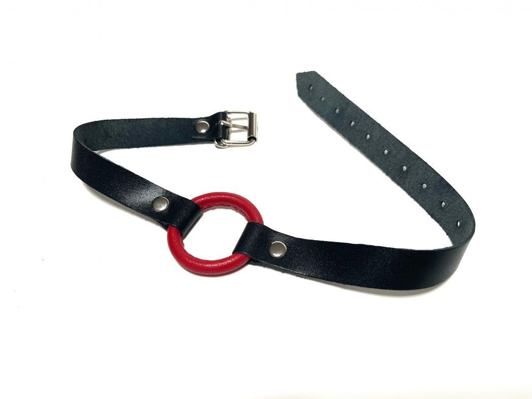 Строгий и надежный кляп, выполненный из натуральной кожи черного цвета. В основании использовано сварное металлическое кольцо, обтянутое нежной овечьей кожей красного цвета. Обхват удобно регулируется с помощью металлической пряжки. Такой кляп станет отличным элементом БДСМ игры, функциональным и комфортным в использовании. Диаметр кольца - 4,5 см.
