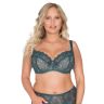 Бюстгальтер выполнен на косточках, с боковыми поддержками, чашки мягкие шитые из кружева цвета изумруд с Т-образным швом и боковым подкроем, чашки и спинка продублированы телесной сеткой. Бретельки пришиты, регулируются по длине, на спине застёжка - удлинитель на крючках, фурнитура металлическая крашеная.
