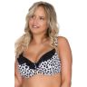 Бюст пляжный мягкий, на косточках, с дополнительными боковыми поддержками, продублирован корректирующей сеткой, бретельки регулируются по длине, на спине застёжка, фурнитура металлическая цвета желтого золота. Декорирован рюшей из ткани-компаньона. Внимание: плавки не входят в комплект!