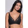 Легкий бескаркасный бюстгальтер полуспортивного типа. Стан из полотна в виде широкого пояса с логотипом VOVA пришита на плоскошовной машине. Чашки состоят из двух поролоновых деталей, которые продублированы кружевными деталями. Низкая серединка. Обеспечивает округлую форму и красивое расположение груди. Регулируемые бретели. Выполнен из мягкого нежного кружева и микрофибры.