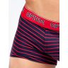 Мужские боксеры в полоску из мягкого хлопкового трикотажа. Комфортная шелковистая резинка, указывающая на принадлежность к бренду. Насыщенный синий в сочетании с роскошным красным - правильное сочетание расцветок для мужского белья.