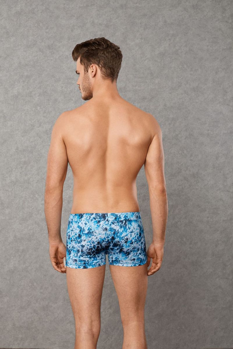 Облегающие мужские трусы-боксеры с ярким сине-голубым принтом, вдохновлённым шумом и брызгами морского прибоя. Мягкий эластичный дышащий материал из смеси натуральных волокон (хлопок + модал) с добавлением эластана. На поясе мягкая пришивная резинка с таким же морским принтом. Удобный анатомический крой без заднего и боковых швов. Передняя панель с подкладкой.