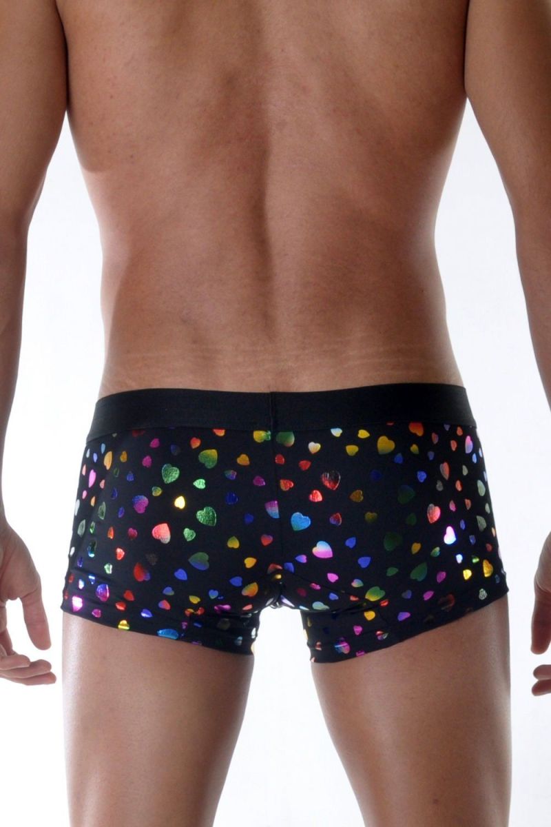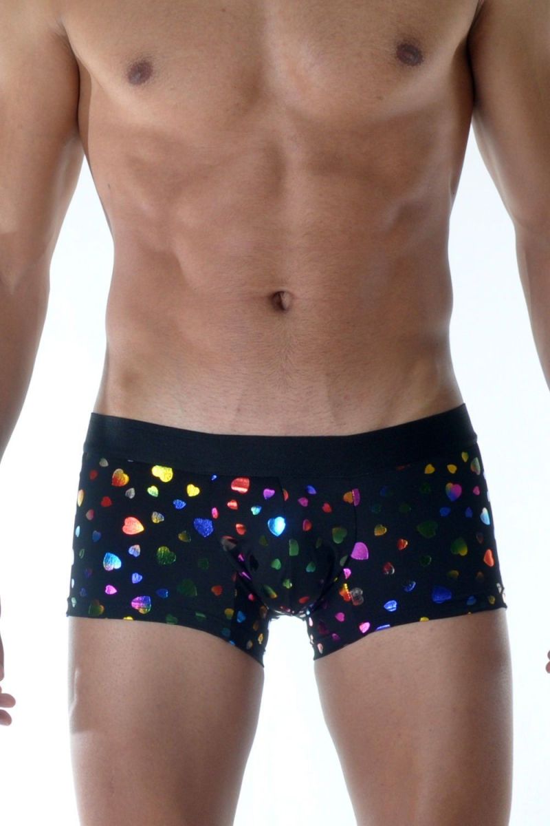 Мужские трусы-боксеры с разноцветными блестящими сердцами.