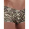 Мужские камуфляжные трусы-хипсы. На левом бедре принт в виде логотипа «DA» (DoreAnse). Мягкий эластичный дышащий материал из смеси натуральных волокон (хлопок + модал) с добавлением эластана. Эластичная резинка на поясе обшита материалом для большего комфорта. Передняя панель с подкладкой.