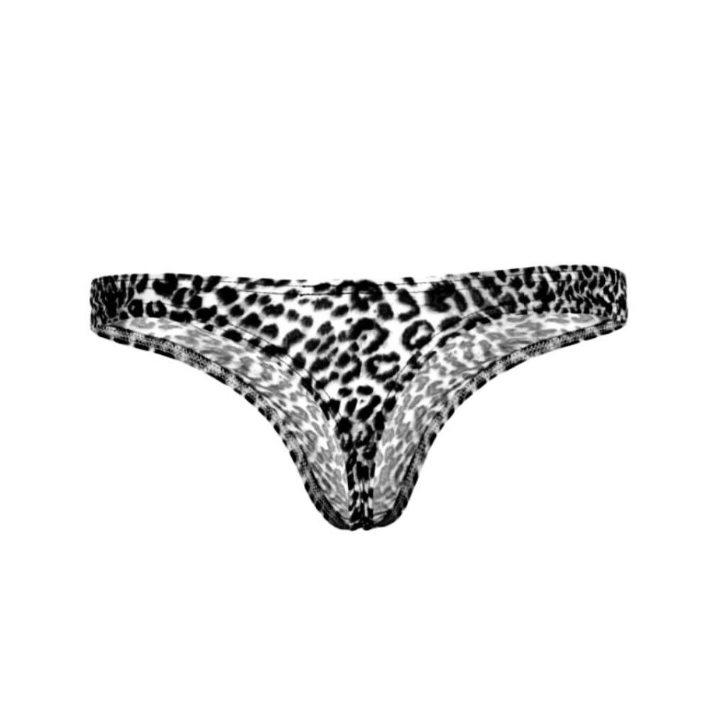 Мужские трусы-тонги с серым леопардовым принтом.