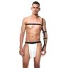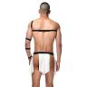 Мужской костюм гладиатора - белая юбка, с разрезами, на широком черном поясе-резинке. И лента-резинка, опоясывающая одну руку с петлей на первый большой палец и грудь. В комплекте: юбка, нарукавник.