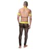 Мужской костюм танцора, состоящий из штанов из полупрозрачной легкой черной ткани и аксессуаров на руки, шею и грудь из черных ремешков и желтой бахромы. В комплекте: штаны, воротник со стрепами, 2 нарукавника.