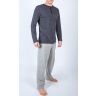 Удобный мужской комплект для дома. В него входят трикотажные меланжевые брюки свободного кроя с боковыми карманами на удобном эластичном поясе, а также кофта с длинным рукавом. Верх оформлен мелким принтом, а круглый вырез с трикотажной отделкой дополнен декоративной планкой. В комплекте: кофта, брюки.