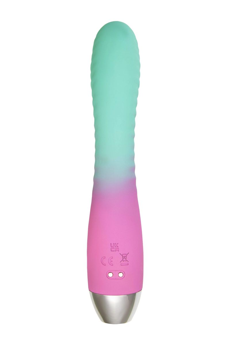 Позвольте представить Azalia от Flovetta — вибратор с плавным градиентом от нежного мятного до теплого розового оттенка, который привнесет в вашу жизнь моменты настоящего наслаждения. Этот милый вибратор классической слегка изогнутой формы сочетает элегантный дизайн и функциональность, даря каждой девушке не только эстетическое удовольствие, но и непревзойденные ощущения. Анатомический изгиб ствола создан для того, чтобы подстраиваться под ваши желания, деликатно стимулируя точку G и создавая максимальный комфорт при использовании. Azalia легко управляется всего одной кнопкой, что позволяет вам без труда выбрать один из 10 режимов вибрации для полного наслаждения. Изготовленный из высококачественного бархатистого силикона, этот вибратор обеспечивает мягкость и нежное прикосновение к коже, а его гибкость помогает максимально адаптироваться к изгибам тела, даря глубокое и приятное воздействие. Для максимального комфорта используйте лубрикант на водной основе. Вибратор заряжается с помощью магнитной зарядки, что делает его использование максимально удобным и освобождает от необходимости искать розетки или разъемы. Рабочая длина - 13,5 см.
