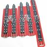 Набор состоит из наручников, оков, ошейника, выполненных из натуральной кожи красного цвета со вставками из черной кожи. Декор в виде банта с металлическим кольцом по центру на каждом изделии придает пикантности для самых смелых фантазий. Все составляющие надежно фиксируются ремнями и металлическими пряжками, позволяющими выбрать нужный размер. Ошейник подойдет на обхват от 29 до 39 см, оковы на обхват от 16 до 26 см, наручники на обхват от 15 до 24 см. Атрибуты можно скреплять по вашему желанию кожаными соединениями на карабинах. Ширина манжет - 6 см.