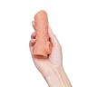 Насадка имеет форму “рукав”, плотно прилегает к пенису, создавая дополнительную толщину и оставляя головку открытой. Это позволяет сохранить чувствительность головки, задерживая эякуляцию. В основании есть отверстие для мошонки, с помощью которого вы надежно зафиксируете насадку на пенисе, не ограничиваясь в активных движениях. Насадка, за счет плотного облегания мошонки и головки, усиливает эрекцию.