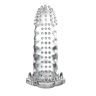 Эта модель создана из эластичного и прозрачного материала, который покрыт нежными и приятными на ощупь шипами. Массивная насадка со стимуляцией клитора придает внушающий размер и объем мужскому достоинству, при этом половой акт происходит значительно дольше, а стимуляция шипиками позволяет женщине окунуться в мир невероятных ощущений.
