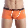 Оранжевые трусы-хипсы с черной резинкой и надписью Movere.