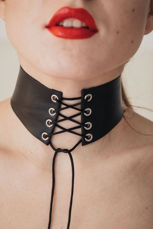 Чокер изготовлен из натуральной мягкой кожи, плотно прилегающей к шее. Размер универсальный, регулируются двумя кнопками сзади и шнуровкой спереди. Чокер добавит элегантности и стиля в ваш образ. Ширина - 6 см.