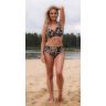 Бюст пляжный с мягкими шитыми чашками, с косточками, с дополнительными боковыми поддержками, бретельки регулируются по длине, на спине застёжка, фурнитура металлическая цвета желтого золота. Чашки и пояс продублированы стабилизирующей сеткой. Внимание: плавки не входят в комплект!