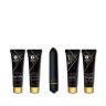 Коллекция миниатюрных изделий поможет вам изучить и нарушить все табу. Ничто так не разжигает желание,как исследование самых нежных уголков вашего тела соло или со своим партнером. В наборе: -Лубрикант на водной основе TOKO AQUA - 10 мл. -Гель для возбуждения клитора SECRET GARDEN - 7 мл. -Возбуждающий крем для влюбленных DRAGON - 7 мл. -Крем для возбуждения G-точки RAIN OF LOVE - 7 мл. -10-скоростная вибропуля .