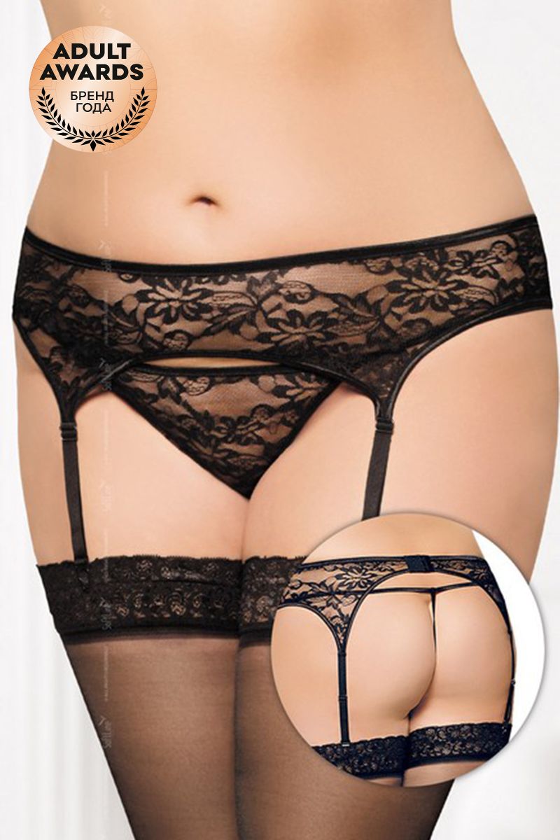 Пояс для чулок и стринги кружевные SoftLine Collection, черный, XXXL