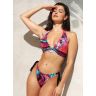 Раздельный купальник: бюстгальтер-триангул со съемными градуированными вкладышами и трусики-слип на завязках. В комплекте: бюстгальтер, плавки.