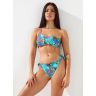 Раздельный купальник: бюстгальтер-бандо с мягкой чашкой, со съемными вкладышами, и трусики-слип на завязках. В комплекте: бюстгальтер, трусики-слипы.