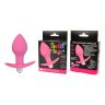 Розовая коническая анальная вибровтулка с ограничителем - 8 см.