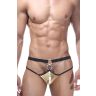 Мужские трусы выполненные из гладкой, блестящей ткани золотого цвета и украшенные серебристой цепочкой. Такие трусы созданы для тех, кто любит своё тело и разнообразие в интимной жизни.