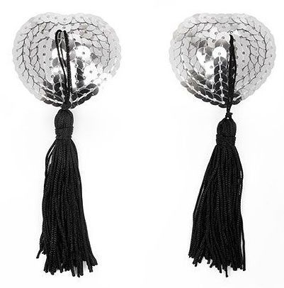 Серебристые пэстисы-сердечки с черными кисточками