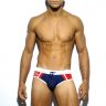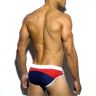 Сине-красные мужские плавки с широким поясом на шнурке.