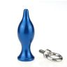 Синяя металлическая анальная пробка с кольцом - 7 см.