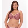 Бюстгальтер выполнен на косточках, с боковыми поддержками для предотвращения скатывания пояса, чашки мягкие шитые из гипюра с люрексом, с боковым подкроем, с Т-образным швом, продублированы телесной стабилизирующей сеткой. Спинка кружевная, продублирована плотной телесной сеткой. Бретельки телесного цвета не съемные, регулируются по длине, на спине застёжка - удлинитель на крючках, фурнитура металлическая крашеная.
