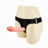 Женский страпон на ремешках с двумя насадками. Размер ремешков регулируется. Длина большого дилдо - 20 см., диаметр - 4,3 см.