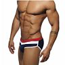 Темно-синие мужские плавки с контрастными полосами на поясе.