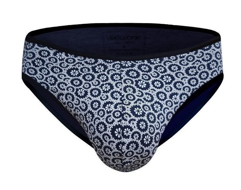 Темно-синие трусы-слипы с мелким цветочным принтом.