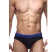 Темно-синие трусы-слипы с зигзагообразным принтом.
