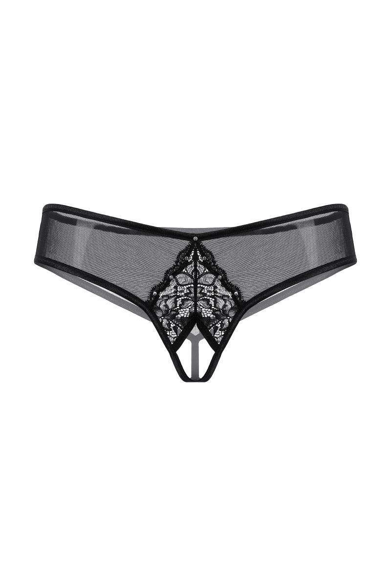 Трусики с открытым доступом. Спереди декорированы кружевной вставкой и маленькими стразами.