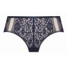 Трусики-шорты спереди из кружевного полотна, продублированного эластичной телесной сеткой, спинка из сетки, сложенной вдвое. Ластовица проложена 100% хлопком.