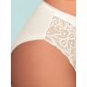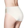 Трусики-слип со средней линией талии из мягкой эластичной микрофибры, облегающей тело словно вторая кожа. Высота бочка 9 см. Пояс обработан мягкой и эластичной окантовкой. Линия открытия ноги спереди декорированы вставками из цветочного кружева. Имеют анатомическую посадку за счет сборки по заднему шву и бесшовный край по линии открытия ноги. Ластовица выполнена из уникального хлопкового материала.
