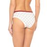 Трусы со средней линией талии, выполнены из мягкого принтованного хлопка со спандексом. Контрастный принт с изображением растений. Вырез ножки отделан плоской тесьмой в цвет изделия, талия - широкой контрастной тесьмой с мережкой. Декор - атласный бантик. Хлопковая ластовица.