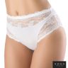 Трусики со средней линией талии. Линия бедра закрыта. По ножкам украшены кружевными деталями. Перед и спинку изделия украшает вставка из кружева. По талии настрочена окантовка-пояс из полотна с эластичной лентой внутри. Сборка по задней детали в области ягодиц создает легкий, визуальный эффект push-up. Внимание: европейские размеры! Для определения российского размера необходимо прибавить 6!