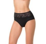 Трусы с высокой линией талии. Изделие выполнено из микрофибры рибана. Вырез ножки и талия проклеены эластичной тесьмой с фестончатым краем. Хлопковая ластовица приклеена к изделию. Благодаря особенностям обработки материалов изделие абсолютно незаметно под одеждой.
