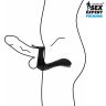 Интимный аксессуар надевается на половой член и мошонку, отросток большего размера располагается в зоне промежности ребристой поверхностью по направлению к анальному отверстию.