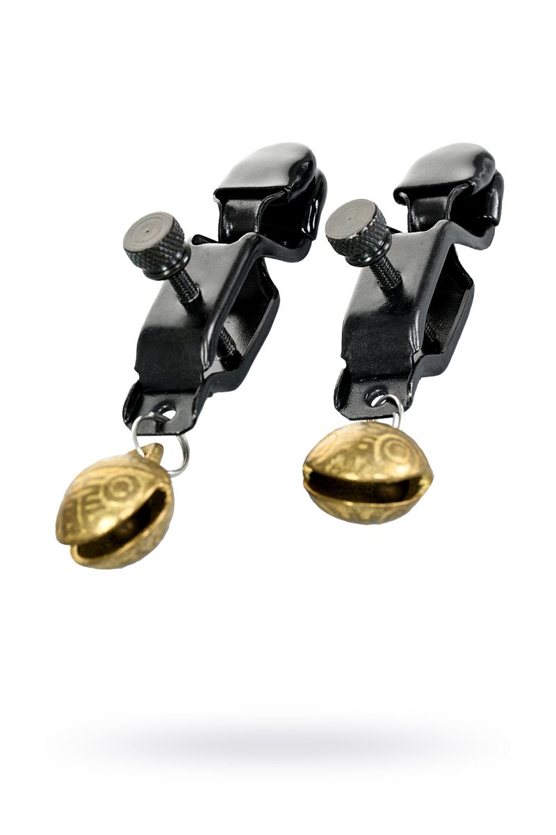 Зажимы для сосков TOYFA Theatre, металл, черный с золотистым колокольчиком