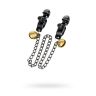 Металлические зажимы для сосков с этническим рисунком дополнены цепочкой. Они добавят перчинки в ваши игры: сами зажимы создадут дополнительную стимуляцию, а колокольчики озвучат каждое движение. Сила сжатия регулируется болтиком.