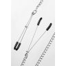 Аксессуар из премиальных материалов подарит непередаваемую, взрывную гамму чувств. Соприкосновение холодного металла с нежной кожей сосков будоражит сознание. Основная, стальная часть атрибута компактная, тактильно приятная и ее удобно держать в руке. На концах черные резиновые наконечники, для безопасного воздействия на эрогенные зоны. Силу сжатия легко регулировать с помощью мини колец. В зависимости от личных предпочтений и сценария игры, можно выбрать легкое пощипывание, или сильное сдавливание. Подходят как женщинам, так и мужчинам. Зажимы соединены крепкой цепочкой. При каждом ритмичном покачивании груди, цепочка эротично движется и игриво звенит. А если за нее нежно потянуть, то можно увеличить бурлящий коктейль чувств от стимуляции. Общая длина зажимов - 7см.
